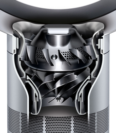 Powietrze wydmuchiwane przez szczelinę w obręczy przyśpiesza, dodatkowo wzmacniając powietrze z otoczenia. Tworzy to jednolity, silny strumień powietrza o wysokiej prędkości. Bez łopatek, bez nieprzyjemnych podmuchów powietrza.
